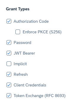 Grant Types (OpenID Connect Configuration > Grant Types) - ensure the following Grant Types are enabled: